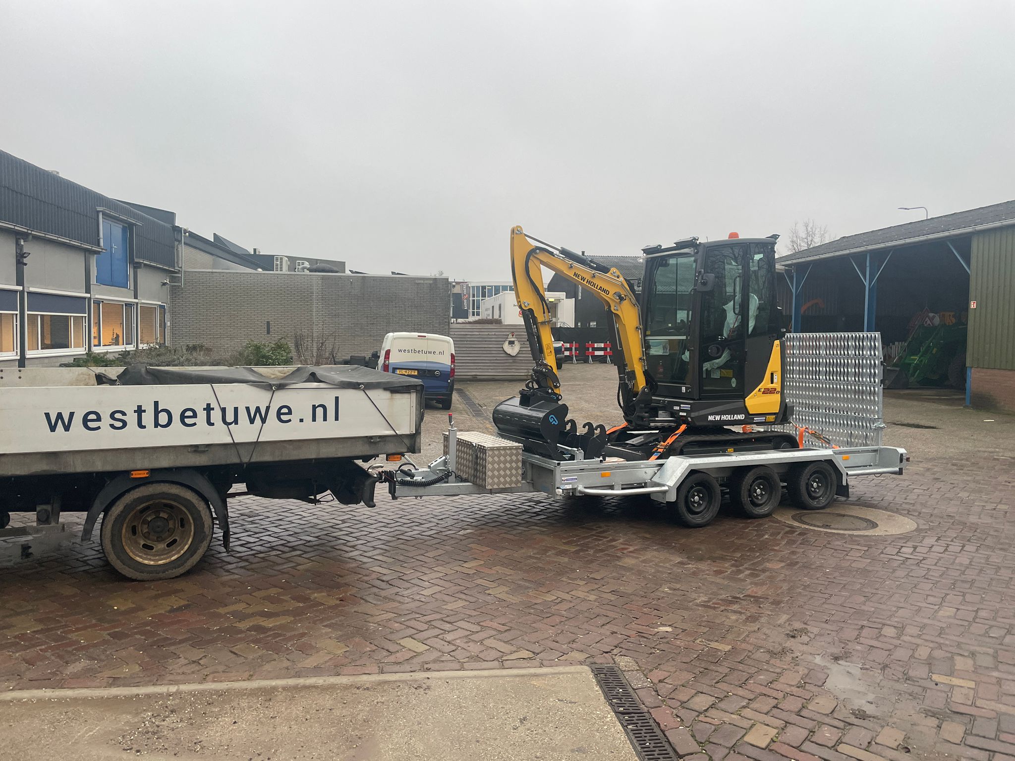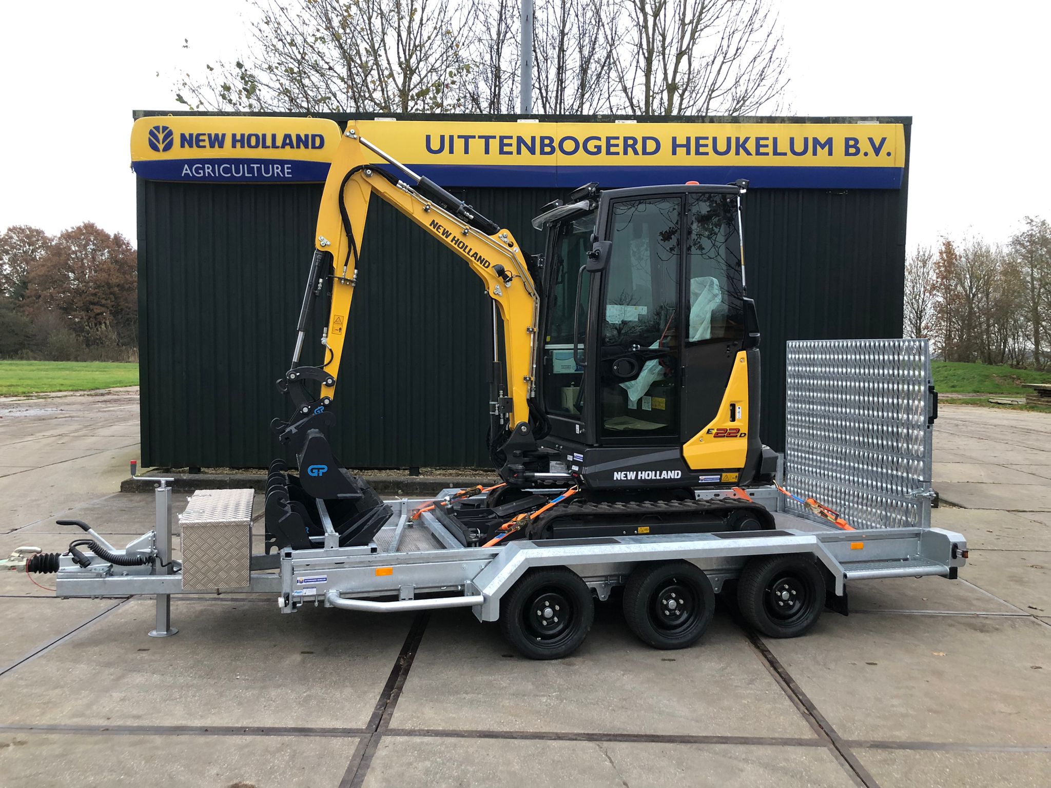 NEW HOLLAND MINIGRAVER + TRAILER VOOR GEMEENTE