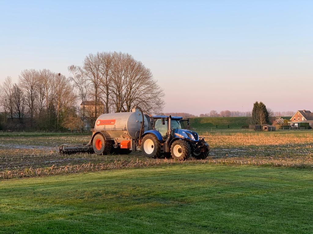 Aan veehouderij- en loonbedrijf van den Heuvel uit Nieuwaal leverden wij deze T6.180 AutoCommand af. Deze compacte 6 cilinder met fronthef is afgeleverd op 600/60×28 en 710/60×38 Trelleborg TM1060 banden.