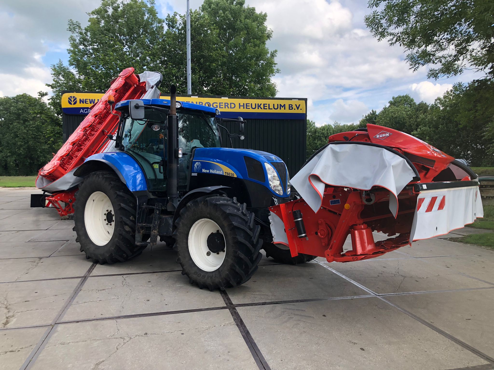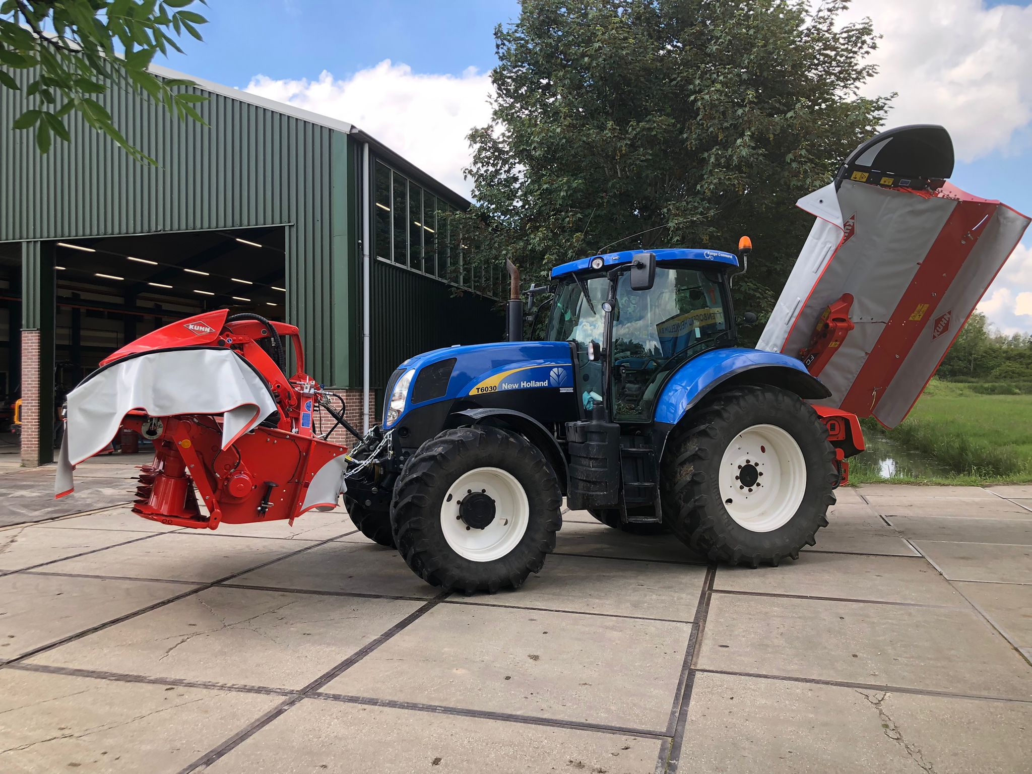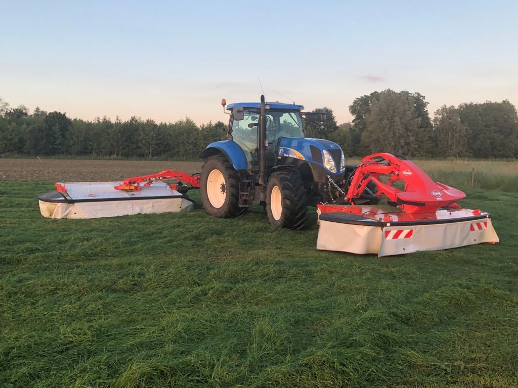 Veehouderijbedrijf van der Spek investeerde weer in een set Kuhn maaiers. Frontmaaier FC3125DF en een FC3515DF achtermaaier. Mooie combinatie met deze New Holland T6030 RC.