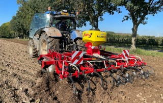 Nog een aflevering van afgelopen herfst; deze Kongskilde Vibro Flex 4319 triltand cultivator met een werkbreedte van 430 cm met 19 tanden. Hier hebben wij een APV PS300 zaaibak opgebouwd.